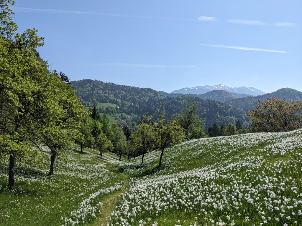 En Slovénie, aux environs des villages Planina pod Golico et Plavški Rovt, jusqu’au sommet Golica.